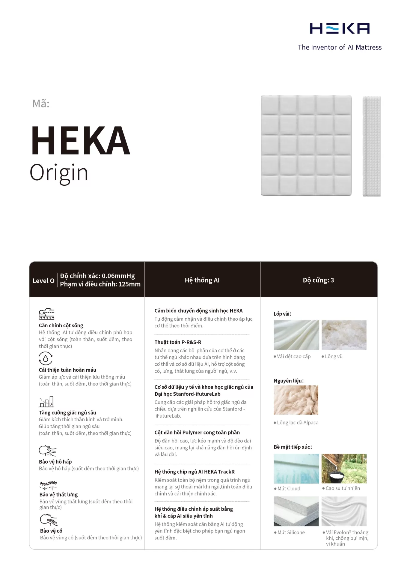 HEKA O Series - đỉnh cao của sự sang trọng và tinh tế. Sản phẩm kết hợp giữa vải dệt cao cấp, đệm lông vũ và lớp chần lông alpaca, mang đến sự xa hoa tuyệt đối. Với lớp mút mây (cloud foam), cao su và sợi thực vật SORONA® – mềm mại, đàn hồi và chống bám bẩn – O Series đem lại khả năng hỗ trợ vượt trội và cảm giác thoải mái chưa từng có, cho bạn giấc ngủ ngon nhất trong đời.